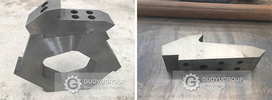 1- Metal Shredder: The main function of the metal shredder is to squeeze large pieces of metal materials and large-diameter drum metal materials that are inconvenient to transport through the shear of the metal shredder, and tear them into pieces that meet the requirements. The machine consists of a shredding blade group, a bearing box, a box bracket, a feeding system, a power system, and an electrical control system.